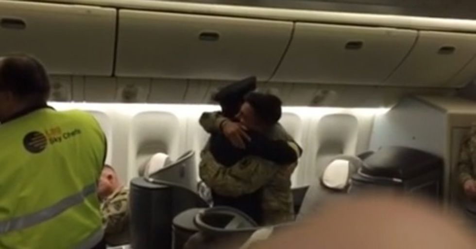 A military officer recently received quite the surprise on his flight home from the Middle East after a long deployment.