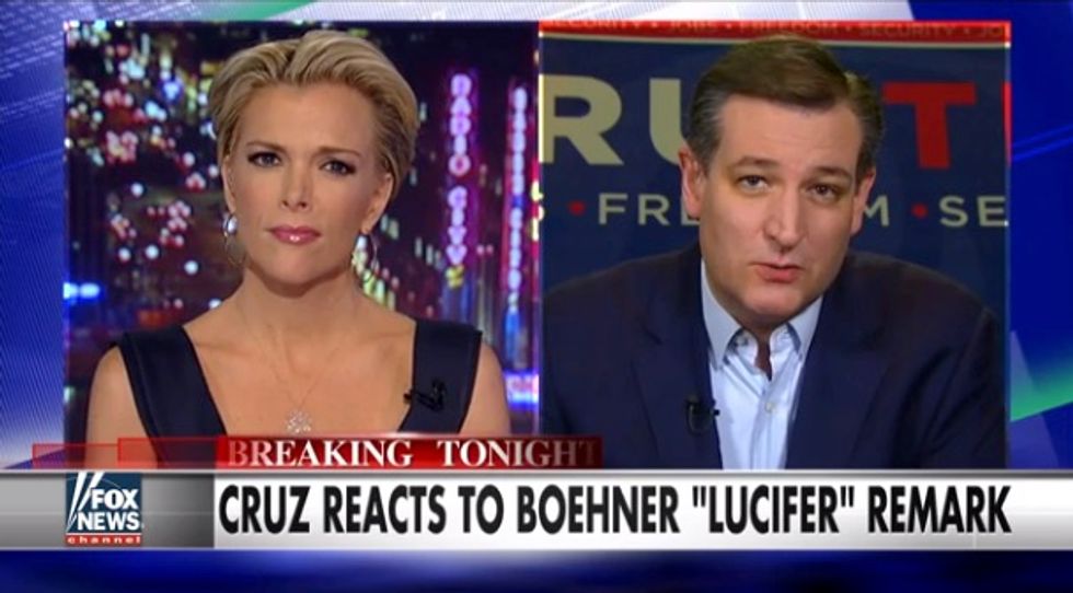 Not only did Cruz fire back at Boehner, but he also told Kelly that Boehner wasn't even honest in his remarks because the two have never worked together.