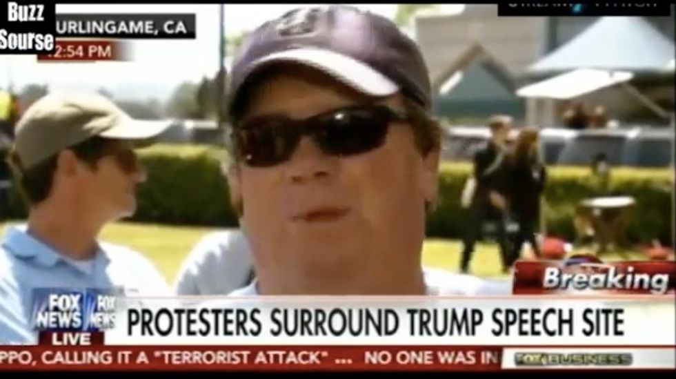 A Fox reporter covering a Donald Trump event in Burlingame, California interviewed an attendee who got into a “tussle” with a few protesters.