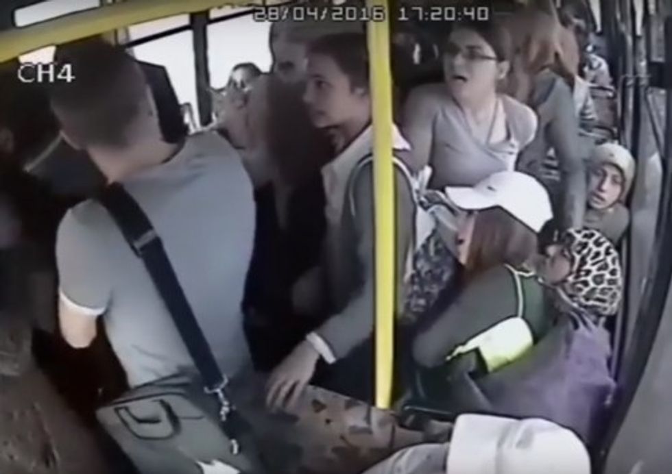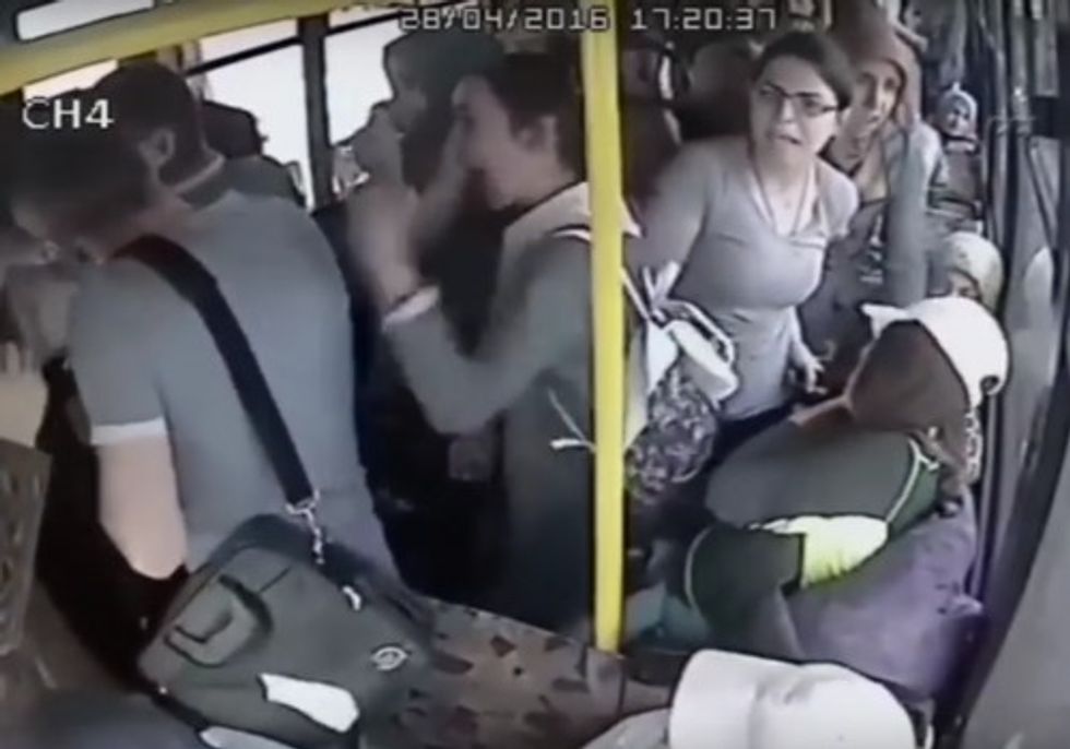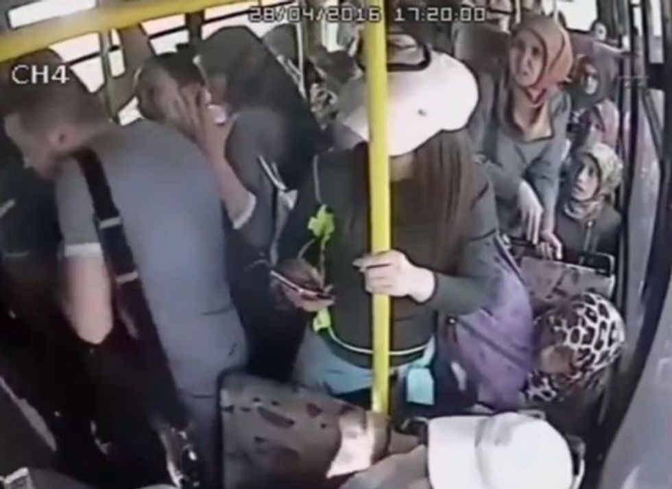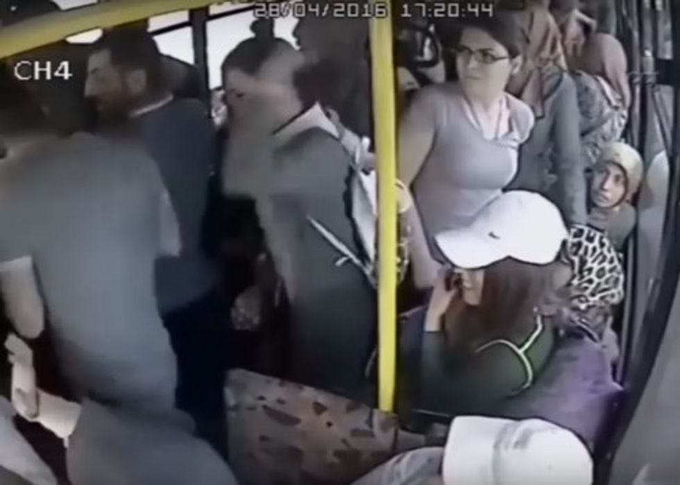 Surveillance video from last Thursday showed the male passenger with his back mostly facing the camera and near the crowded exit. And after his female victim confronted and began hitting him, other women joined in during the ride in the Kocaeli province.