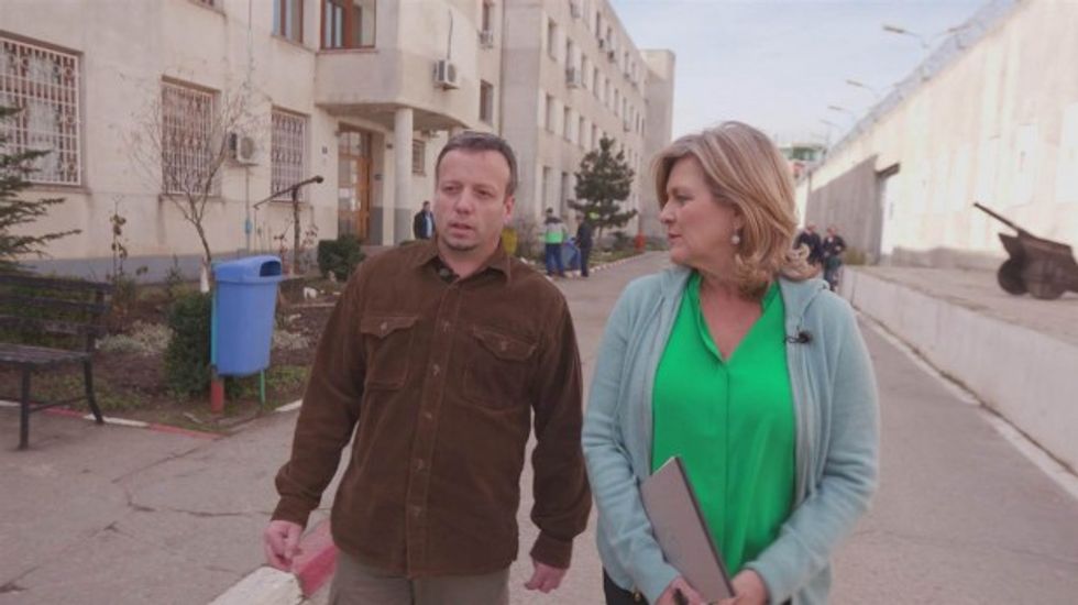 NBC News journalist Cynthia McFadden with Romanian hacker Marcel Lehel Lazar in Romania. (Image source: NBC News)