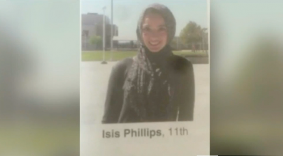 The caption “Isis Phillips” appeared under a photo of the student, who was wearing a hijab. Her actual name is Bayan Zehlif. ISIS is a commonly associated with the Islamic State terrorist group
