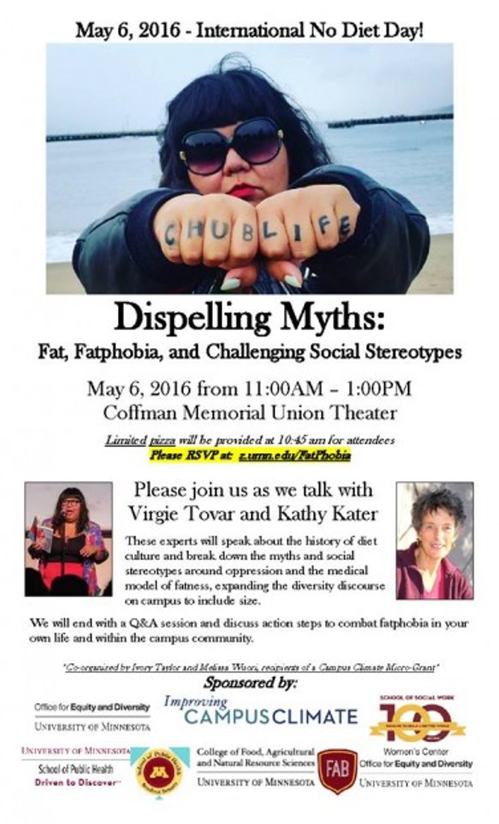 Tovar’s talk, titled “Dispelling Myths: Fat, Fat phobia, and Challenging Social Stereotypes,” introduced the idea of “overweight people as an oppressed class,” the Minnesota Republic reported.