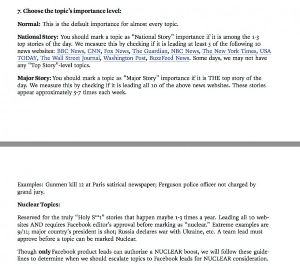 They "Trending Review Guidelines" show that while Facebook's algorithm allows news stories to surface, its editors are tasked with determining the level of importance.