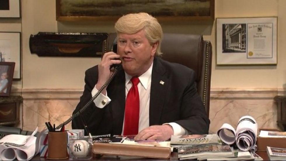 The show began with Darrell Hammond’s Donald Trump sitting in his spacious Trump Tower office, talking on the phone with a reporter, pretending to be a publicist named Joey Pepperoni. And similarly to how the media viewed the real Donald Trump’s claims that he did not impersonate an elusive publicist named John Miller, this reporter wasn’t buying it.
