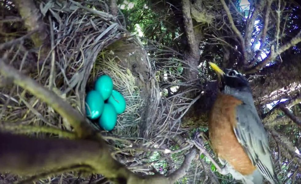 A YouTube user said he found a bird's nest in his front yard and then set up his GoPro camera in the branches in order to capture video of the eggs hatching.