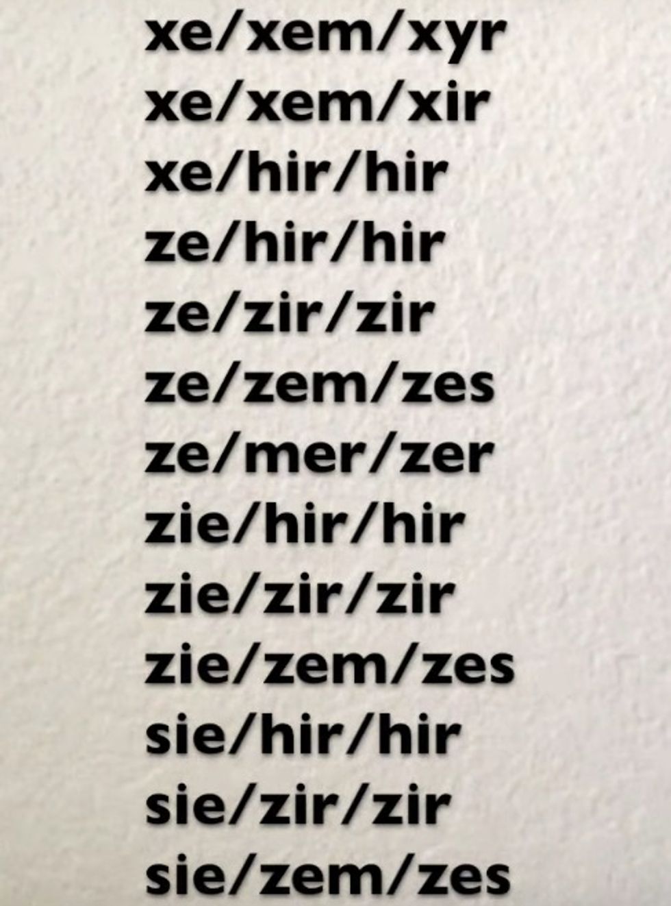 Volokh wrote that "ze" or "hir" doesn't necessarily cover all the newfangled options. "Check out this list," he noted, "which already includes 'zie,' 'sie' (not the German version), 'ey,' 've,' 'tey,' 'e,' '(f)ae,' 'per' and 'xe.' Why wouldn’t some creative folks decide they want to add still more?"