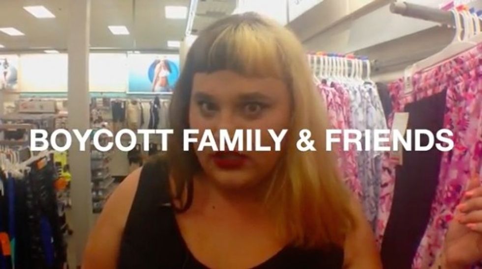 In the satirical video, which the friends filmed at a Target store, "A" offers several examples of people and institutions the AFA and its supporters are better off boycotting. The friends compare boycotting Target because of its pro-LGBT policies to boycotting "friends and family" because of the percentage of sexual abuse that occurs among relatives, or boycotting "the cops" because "sexual misconduct is the second greatest of all civilian complaints nationwide against police officers."