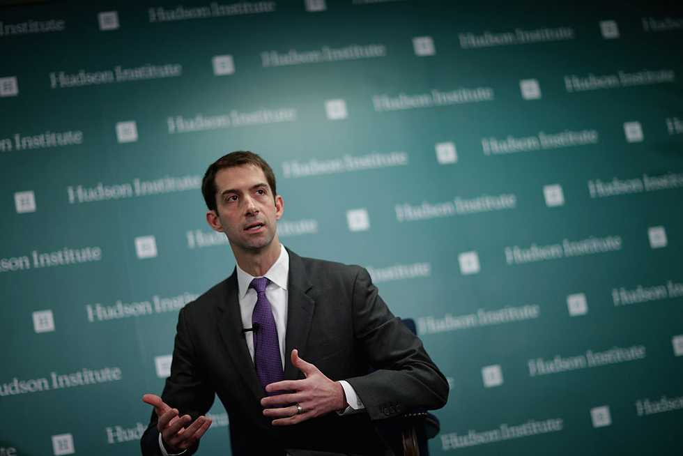 Sen. Tom Cotton (R-Ark.) participates in a conversation about American foreign strategy and statesmanship at the Hudson Institute March 18, 2015 in Washington, DC. (Chip Somodevilla/Getty Images)