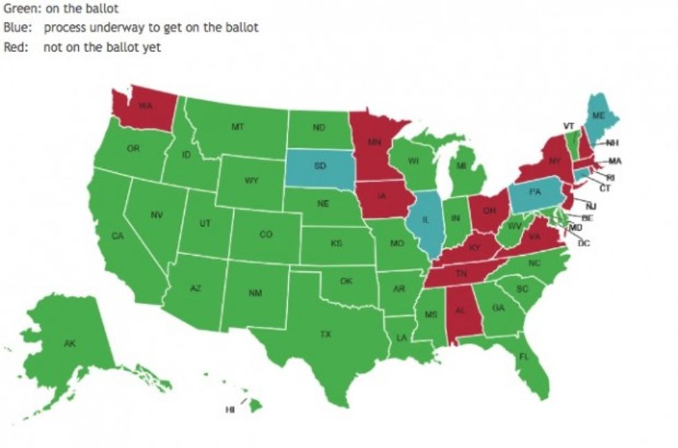 According to the Libertarian Party, their candidate — to be formally selected at the party’s convention later this month — will be on the ballot in 32 states, and they are in the process of getting on the ballot the remaining states and Washington, D.C.
