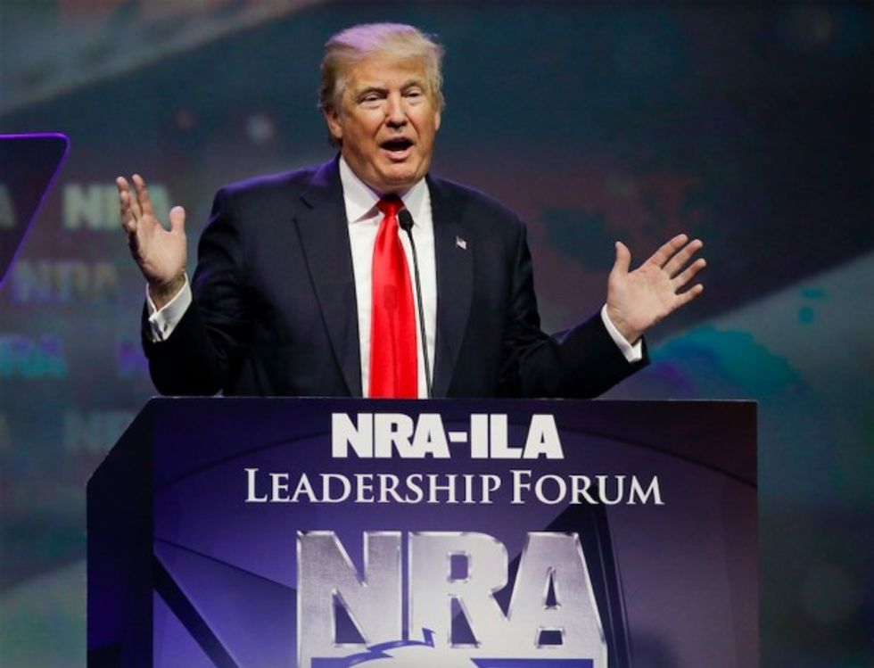 Republican presidential candidate Donald Trump speaks at the National Rifle Association convention, Friday, May 20, 2016, in Louisville, Ky. (AP Photo/Mark Humphrey)