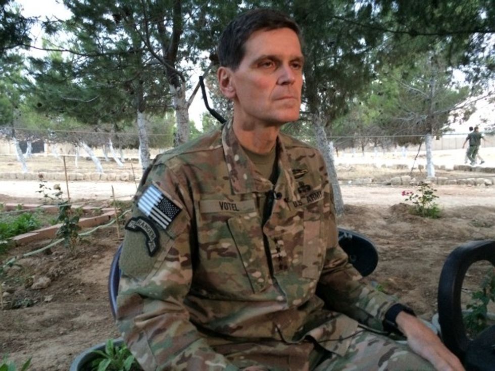 In an interview as dusk fell and he prepared to fly out of Syria, Votel said his visit had hardened his belief that the U.S. is taking the right approach to developing local forces to fight IS, an acronym for the Islamic State.