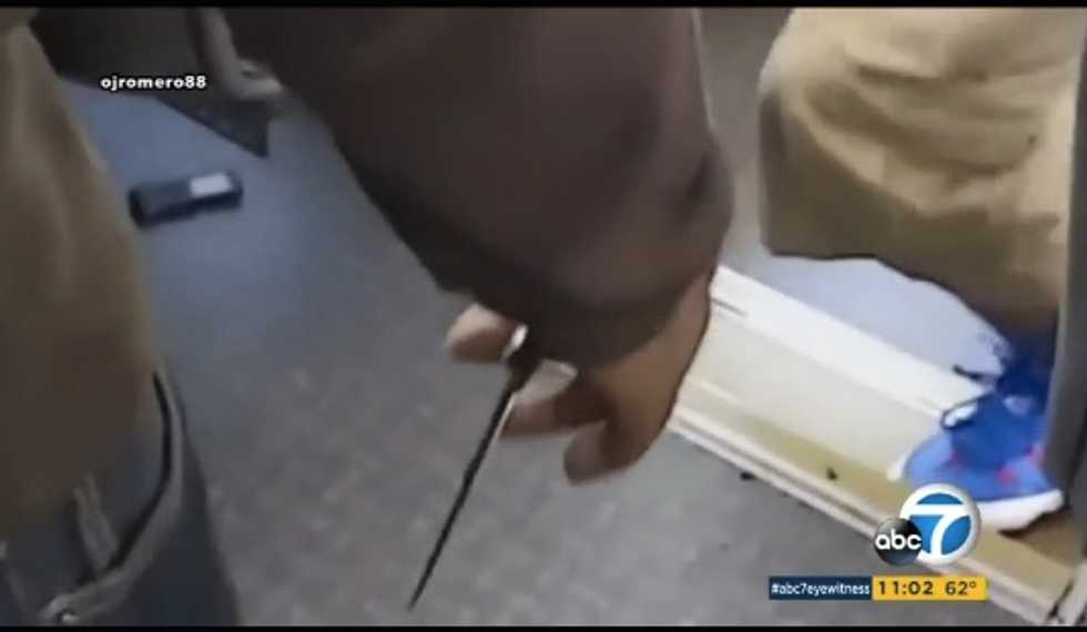 The man who allegedly pulled the knife was taken to an local hospital, where he was treated for minor cuts and bruises. Officials told KABC that it did not appear that anyone was stabbed Thursday.