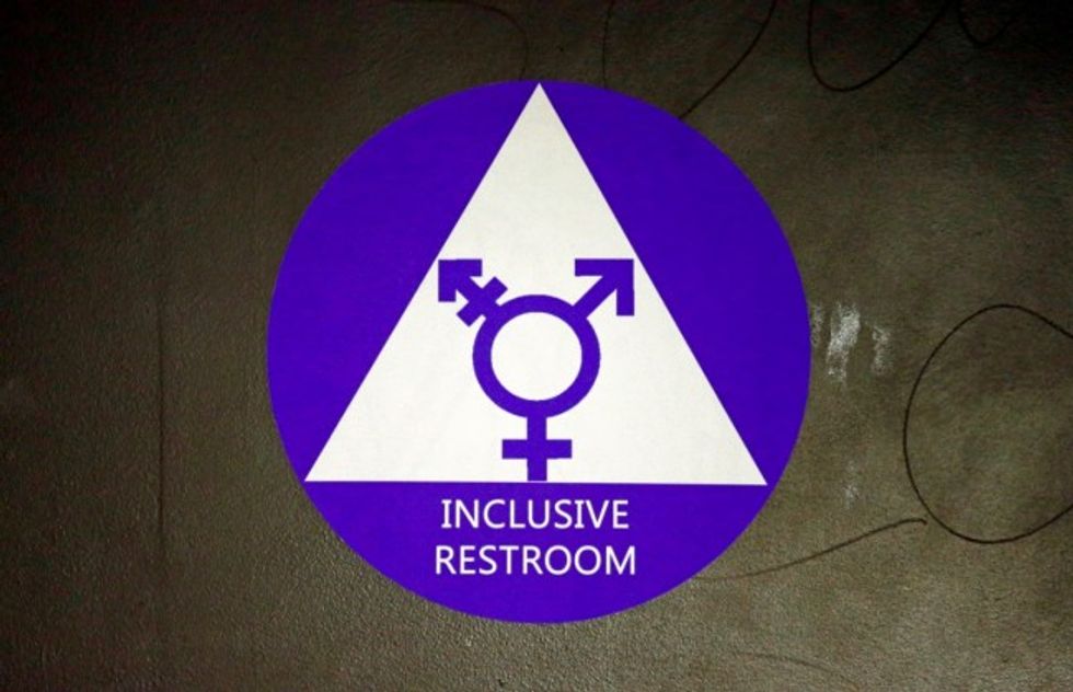 They now include signs that say "All Gender Restroom" with the traditional man and woman figures next to a figure wearing pants on one leg and a dress on the other.