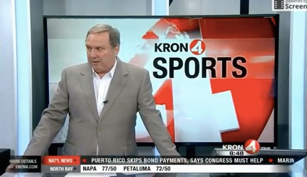 A San Fransisco sportscaster had a hard time containing his agitation when he realized during a live broadcast that the story he’d prepared to discuss had already been covered by his colleague minutes earlier.