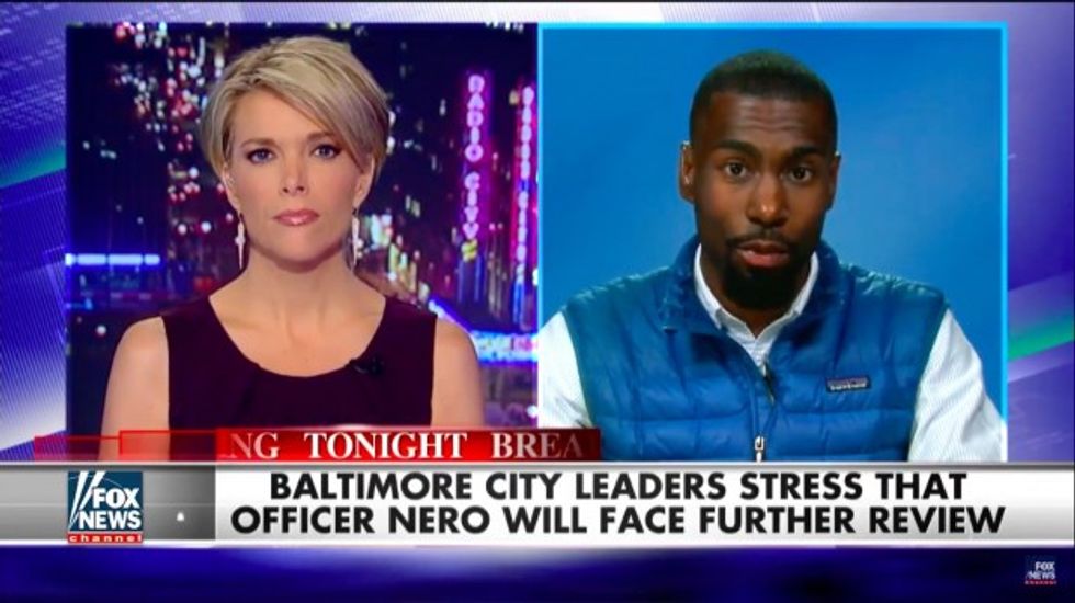 Fox News host Megyn Kelly confronted Black Lives Matter activist and former Baltimore mayoral candidate DeRay Mckesson Monday after the Baltimore police officer charged in the Freddie Gray case was acquitted on all charges.
