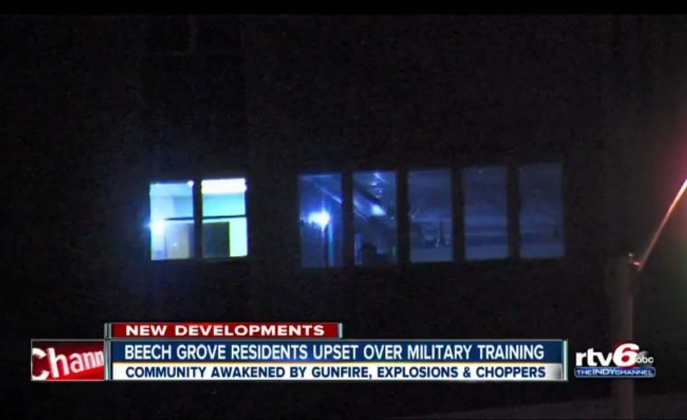After residents of Beech Grove, Indiana, hit their pillows Monday night and turned off their lights, their collective shuteye was over and done just after midnight when explosions, gunfire and low-flying helicopters were heard nearby.