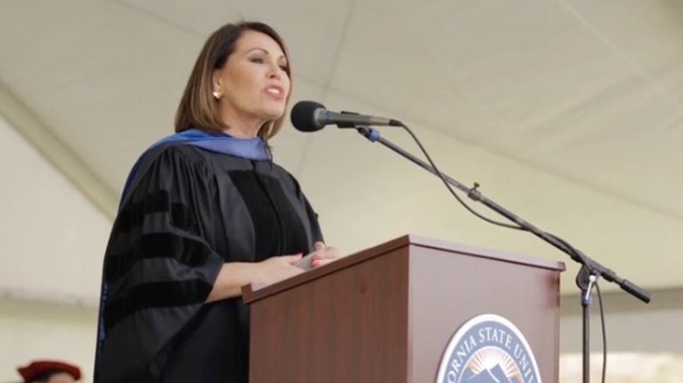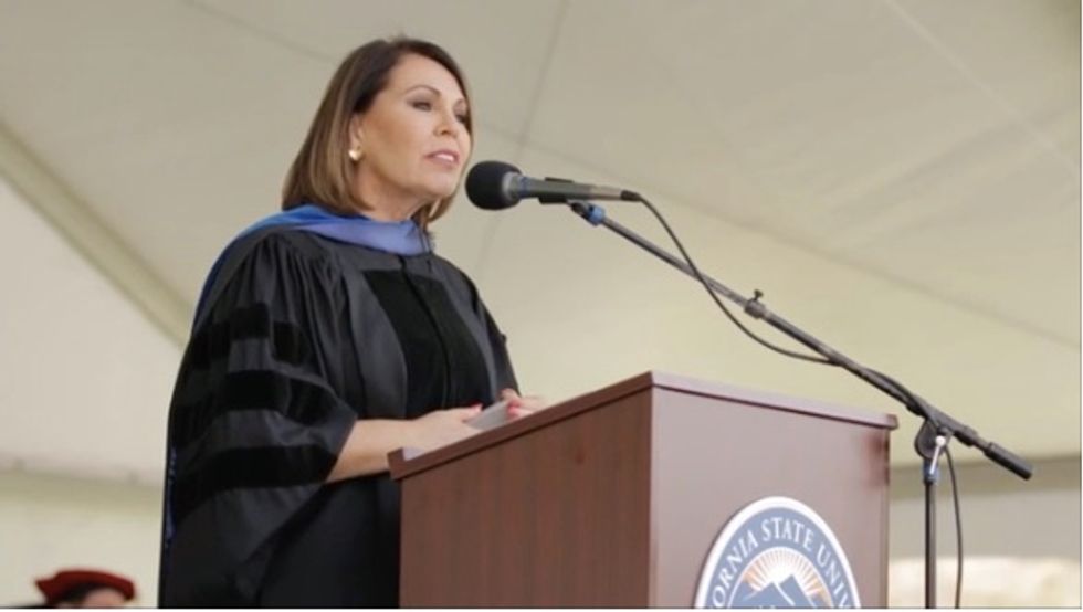 Graduating students at California State University, Fullerton turned on the keynote speaker at a ceremony honoring the school’s College of Communications over the weekend after she used her speech as an opportunity to attack presumptive Republican presidential nominee Donald Trump.
