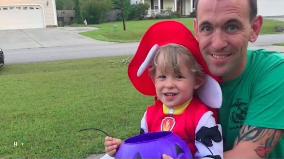 First, John took Bryson trick or treating.