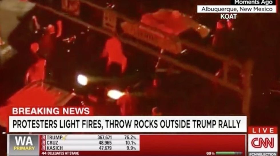 A demonstration against presumptive Republican nominee Donald Trump turned ugly in New Mexico Tuesday night, as violence erupted and the ire of angry protesters was unleashed on police officers trying to keep the peace.