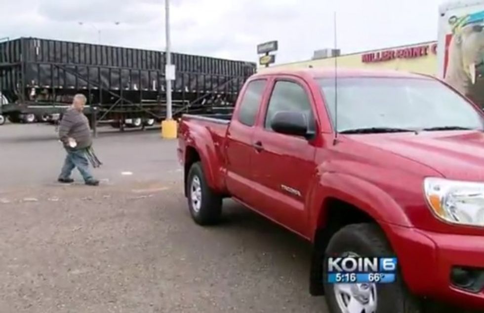 The reporter followed him, however, and asked why he was panhandling if he was driving what appeared to be a brand-new truck.