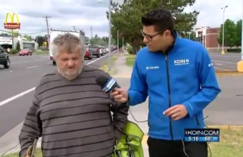 The man told the KOIN reporter that he was leaving, wouldn't be coming back and that he doesn't actually need the money his panhandling was bringing in.