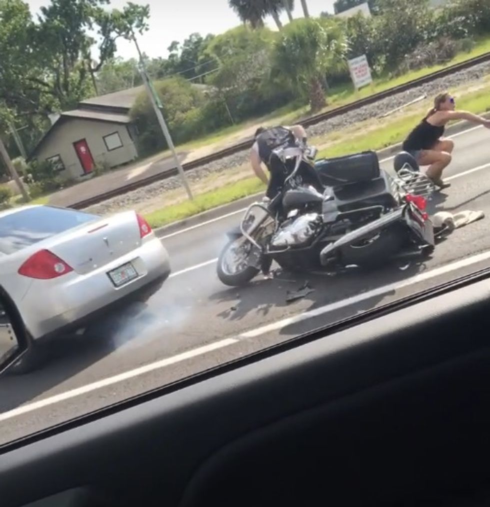 According to WTSP-TV, another motorist said a group of bikers were run off the road by the driver. And when the bikers caught up with the driver, WTSP said the other motorist started videotaping the altercation.