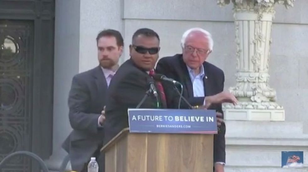 OAKLAND, Calif. (TheBlaze/AP) — A group of animal rights activists briefly interrupted a Bernie Sanders rally in Northern California when they jumped barricades and tried to rush the podium.