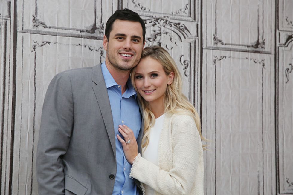 Higgins officially proposed to "Bachelor" contestant Lauren Bushnell on the show's season finale in March.