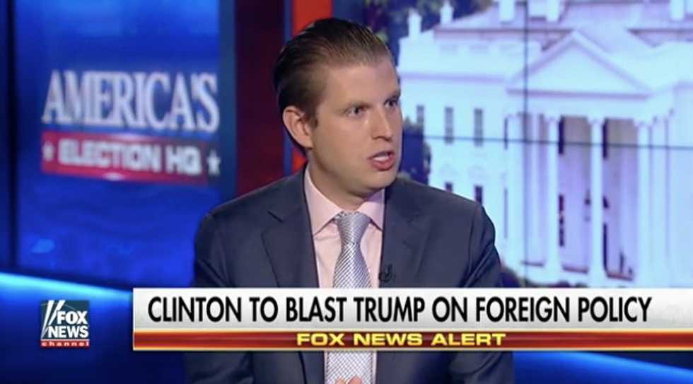 Eric Trump continued laying into Clinton over her record at the State Department, saying she has done "no job" for veterans and has done a "total disservice" to the country.