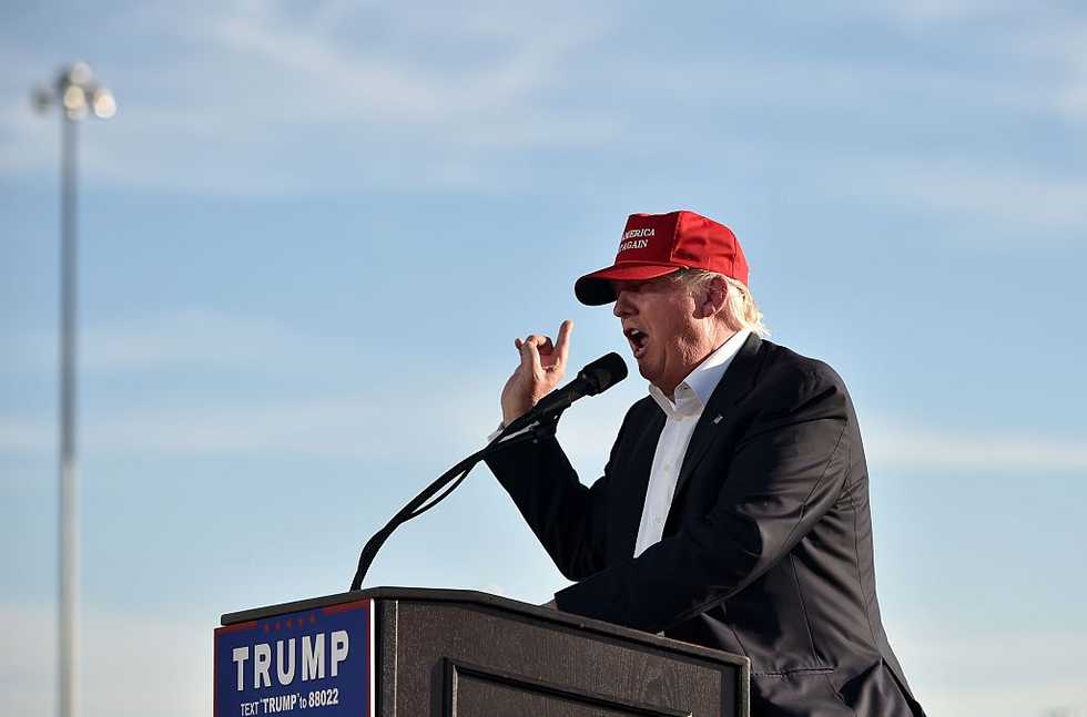 Republican presidential candidate Donald Trump speaks during a rally at the Sacramento International Jet Center in Sacramento, California on June 1, 2016. (JOSH EDELSON/AFP/Getty Images)