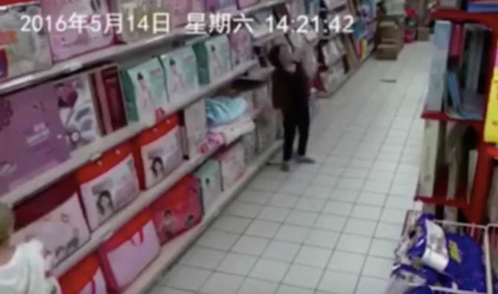 A bizarre video featuring a woman convulsing, gurgling and collapsing in the middle of a supermarket aisle in China has sparked speculation on social media that the individual fell prey to demonic possession, according to the Daily Mail.