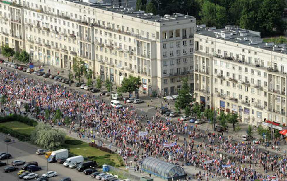 Former Polish Presidents Lead Thousands in Protest Against Right-Wing Government