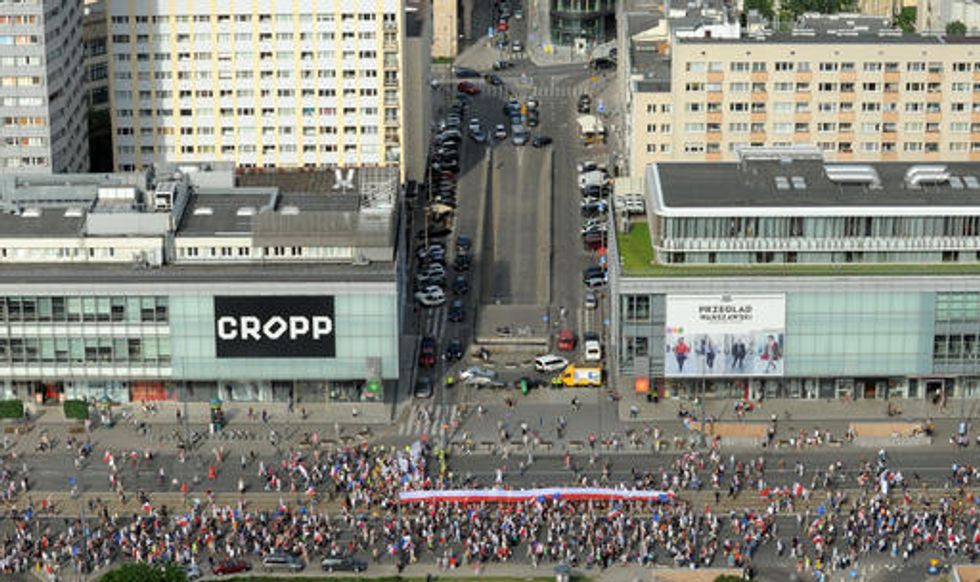 The protests Saturday brought former presidents Aleksander Kwasniewski, a left-winger, and Bronislaw Komorowski, a centrist, together to remind the Poles about their attachment to democracy, which they won in an election on June 4, 1989, that peacefully ousted the communists from power.