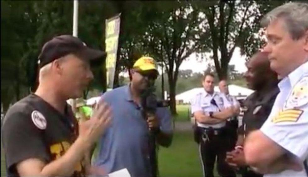 "You're the only people who have hassled us today," one of the pastors tells the cops. "Rigorous debate is what this nation was founded on!"