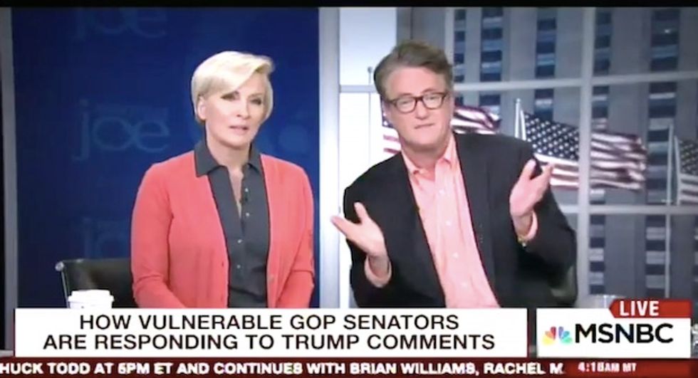 Scarborough's warning about the down ballot damage Trump could do to the GOP continued: "You have to start calling him out and saying you're going to retract your endorsement today — or else the United States Senate is in danger. Kelly Ayotte's seat is in danger. Rob Portman's seat is in danger. Ron Johnson's seat is in danger."
