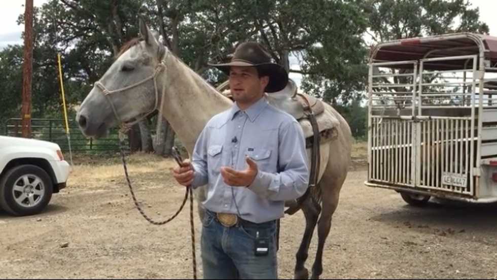 Borba, 28, said he quickly got his horse, Long John, out of its trailer. He grabbed a rope before riding over to the man who was reportedly struggling with the bike gears and attempting to flee on foot. Borba then lassoed the man around the legs and when he dropped, the rancher dragged him to one end of the parking lot.