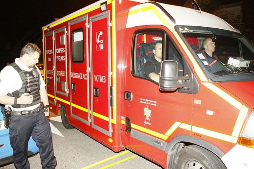 Firefighters vehicle leaves after an assault on June 14, 2016 in Magnanville, 45 kms west of Paris. (Photo by MATTHIEU ALEXANDRE/AFP/Getty Images)