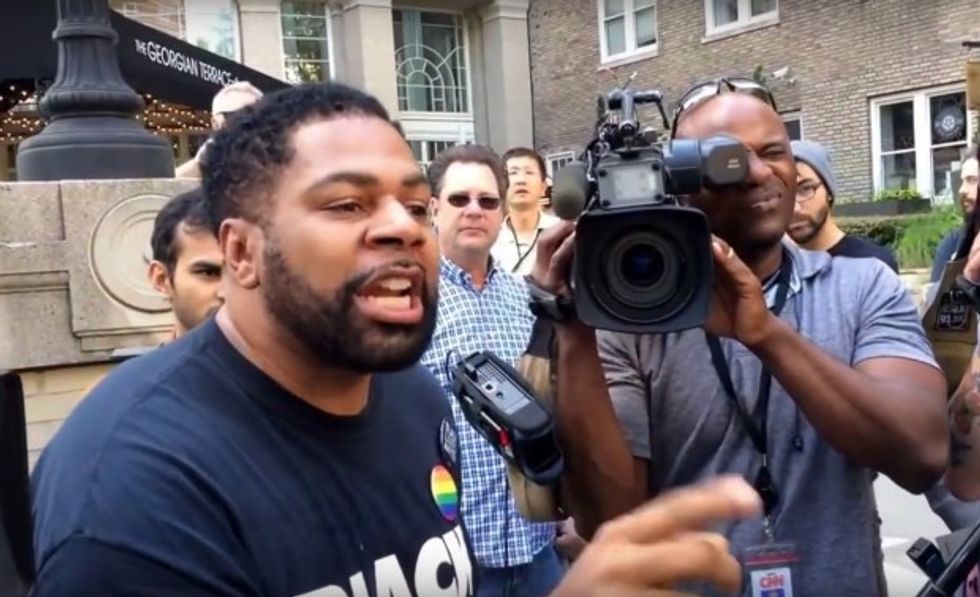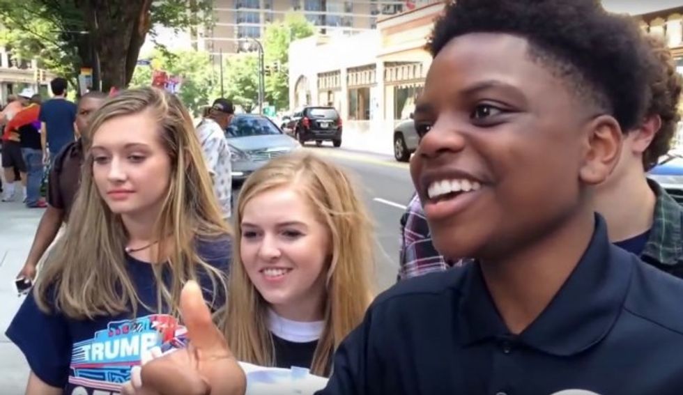 A teenage black supporter of Donald Trump faced off against an older black Trump protester Tuesday in Atlanta — and the pair drew quite the crowd.
