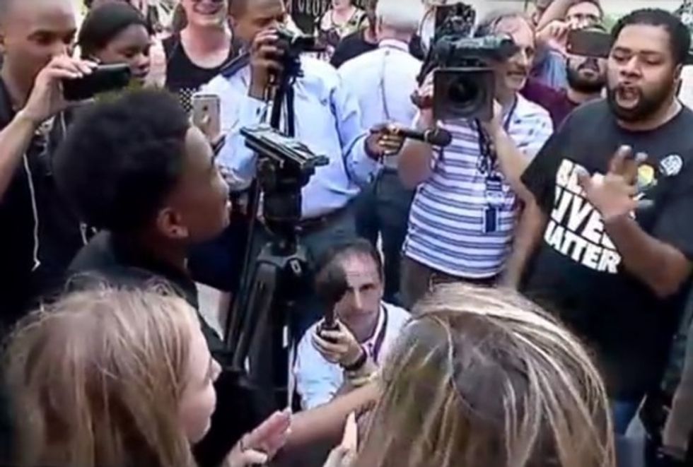 The older man — donning a Black Lives Matter T-shirt — yelled at the teenager in the streets outside the presumptive Republican presidential candidate's rally.