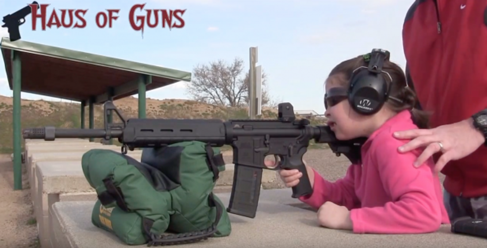 The video was uploaded by a dad who runs the Haus of Guns Facebook page.