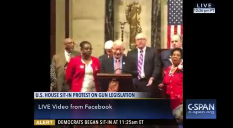 But Rep. Scott Peters, a California Democrat, live-streamed the House speeches via Periscope. C-SPAN carried Peters' feed live. Members of Congress also live-streamed the sit-in on Facebook.