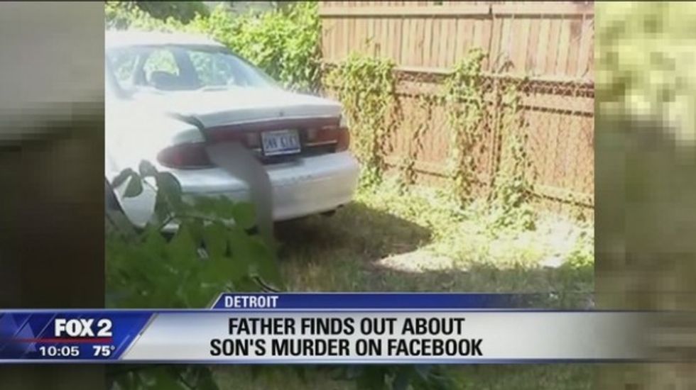 A Michigan father says he learned about his son's murder after seeing a viral photo on Facebook showing the victim's arm hanging out of the trunk of a car.