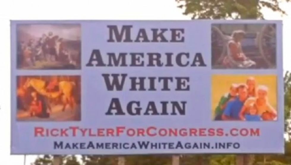 The billboards — which were located off Highway 411 near Benton, WRCB-TV reported — said "Make America White Again" and included images of white people engaged in picturesque activities.
