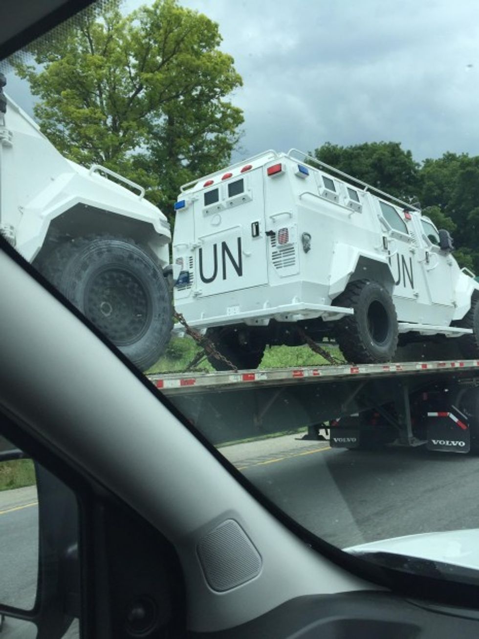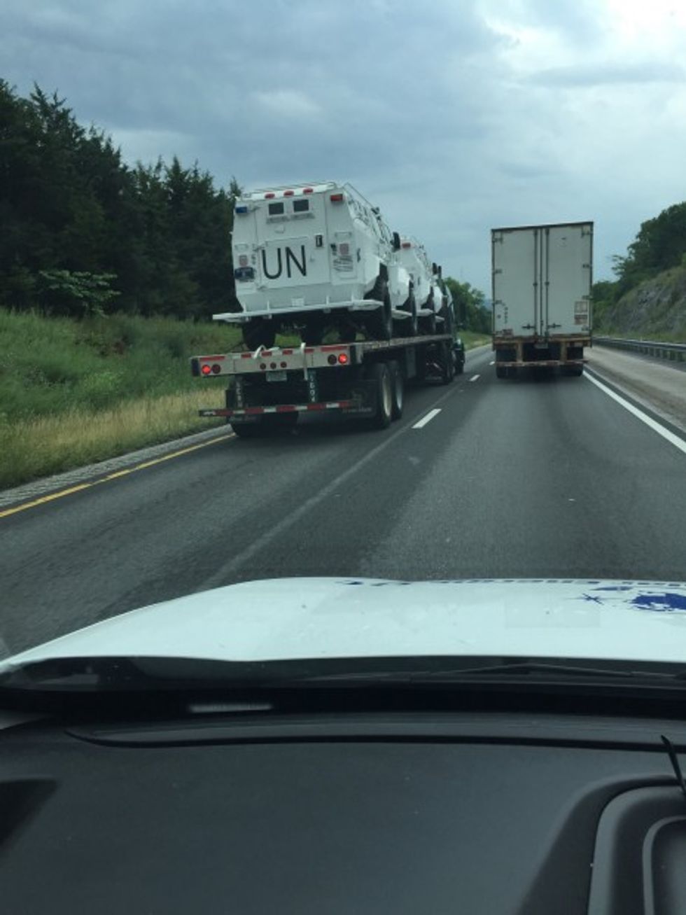 Several military United Nations vehicles were sighted on Interstate 81 in Virginia, predictably sparking conspiracy theories.