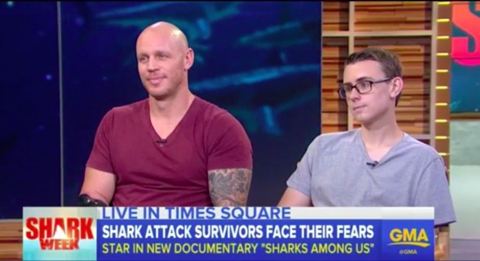 Something viewers can always expect to see during "Shark Week" is a collection of real-life stories about people who survived shark attacks. But this year, two survivors decided to add a new twist: They're heading back into shark-infested waters to face the menaces head-on for a special called “Sharks Among Us," which airs Monday at 10 p.m. ET on Discovery..