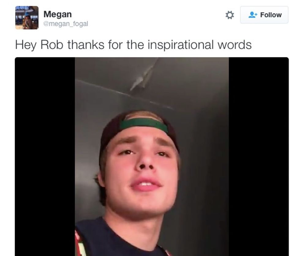 "Hey Rob thanks for the inspirational words," Megan tweeted, allowing the video to speak for itself.