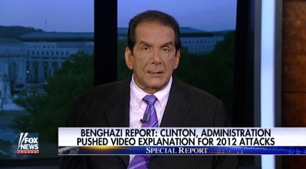 Charles Krauthammer joined a panel of guests Tuesday night on Fox News' "Special Report With Bret Baier" to discuss the newly released House report on the 2012 Benghazi attack and labeled the U.S. government's failure to act in time to save the lives of four Americans a "debacle of the first order."