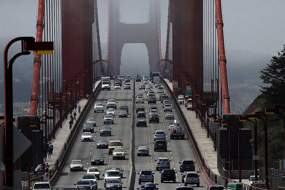 Cars drive over the Golden Gate Bridge on June 28, 2016 in Sausalito, California. (Justin Sullivan/Getty Images)