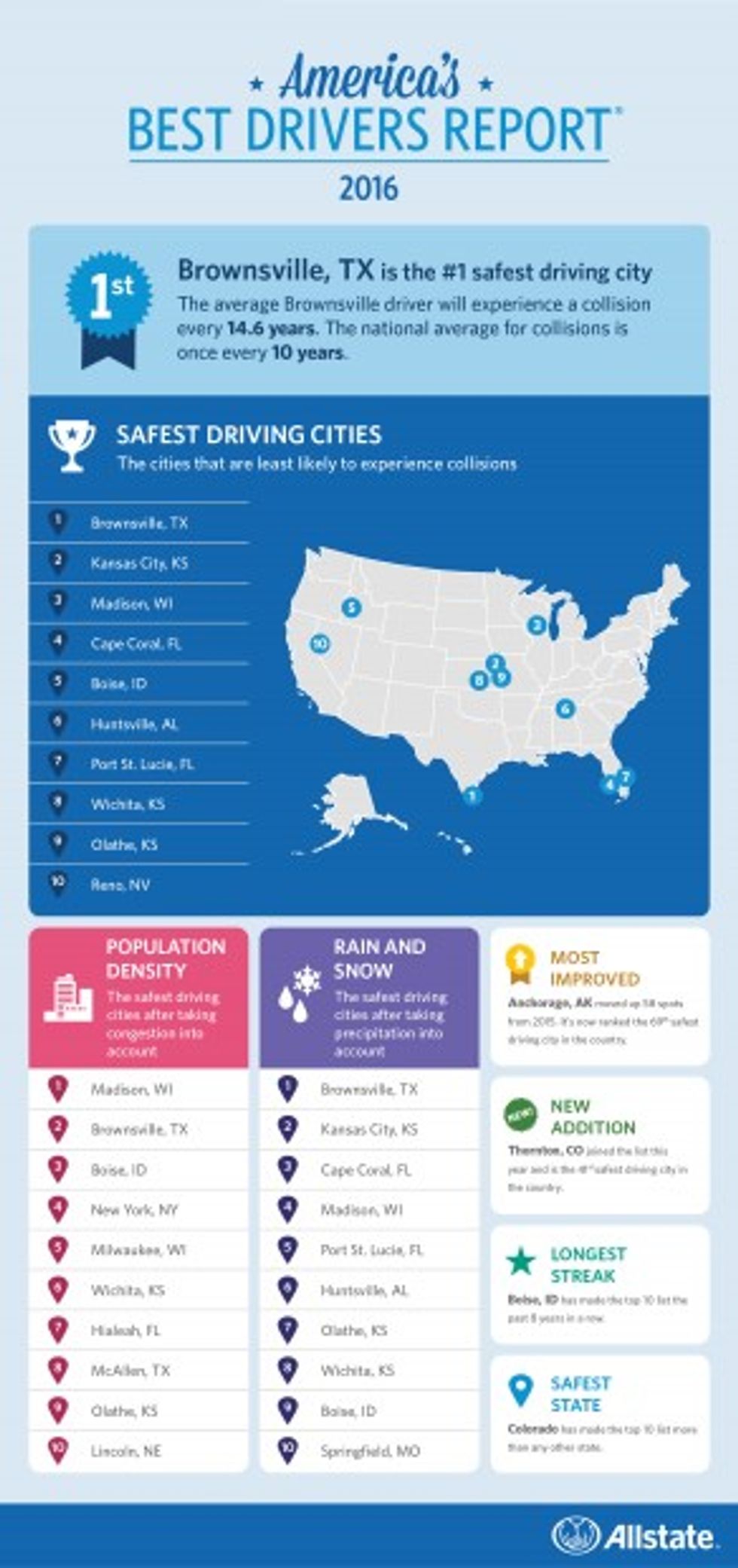 Drivers in Brownsville, Texas, are the best in America, according to a new report by Allstate Insurance.